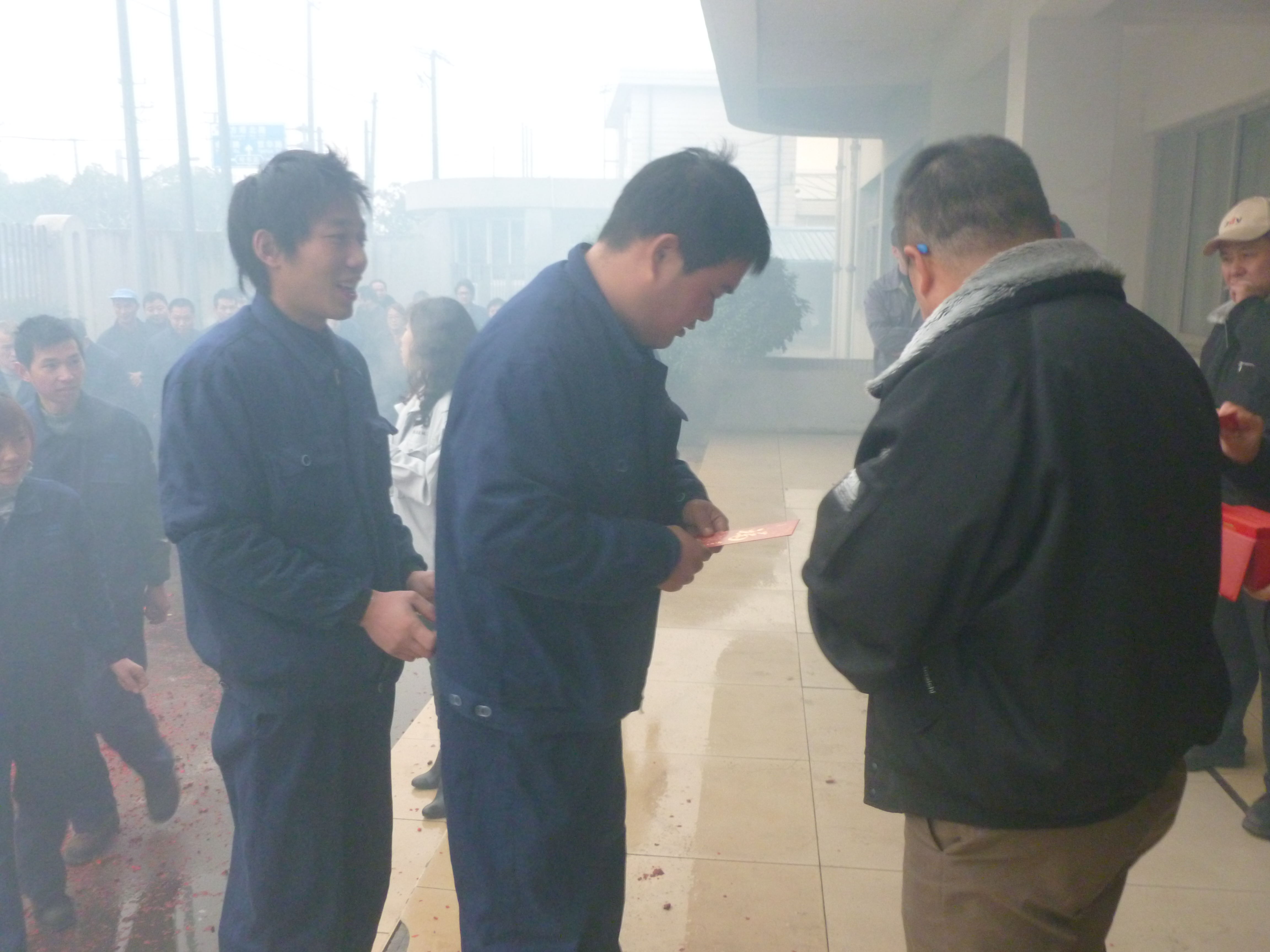 点燃开门鞭炮                                                 厚厚的开门红包是对员工的心意